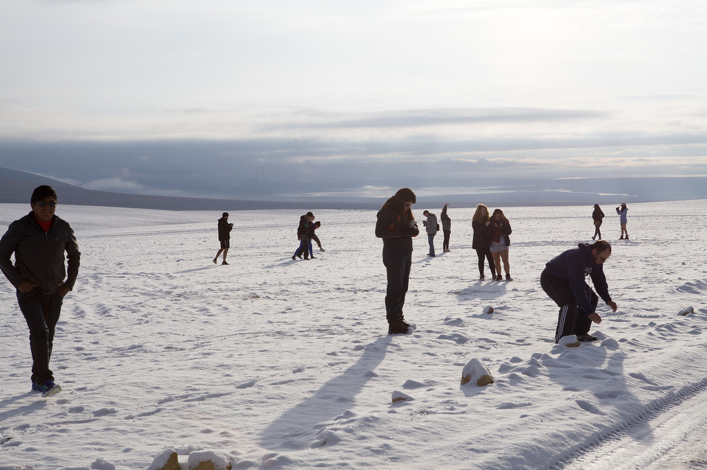 소금사막은 한 여름인데 고산지대는 한 겨울 - 겨울 복장이 필요하다.