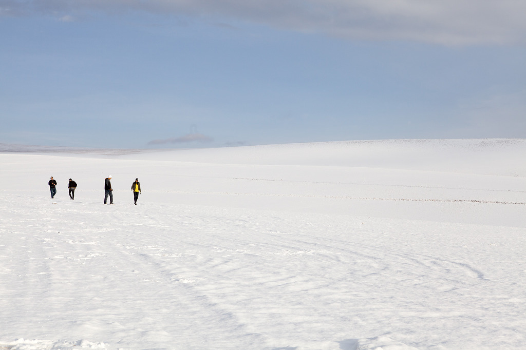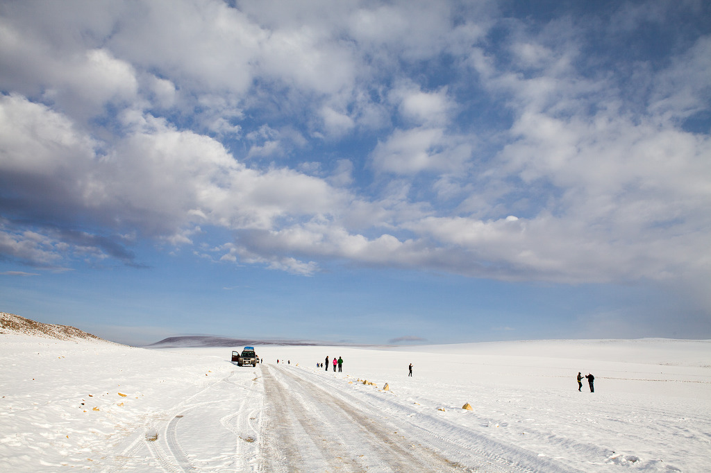 한 참을 달려 수증기를 내뿜는 간헐천도 돌아보고, 내려오는 길에는 하얀 눈이 아침 햇살에 빛나는