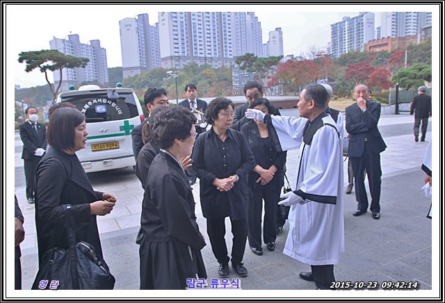 람구 류우식 요한사도님 영결미사와 그의 삶 4 4. 장례미사 류우식 요한사도는 온몸을 기증하여 영구차로 서울성모병원으로 향하고 유족 아내 정징자 아가다, 장남류평우 필레몬, 자부 손미란, 장녀 류수림 글라라, 친지도 여기서 이별을 해야했다!