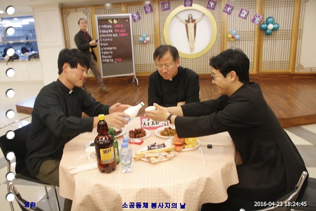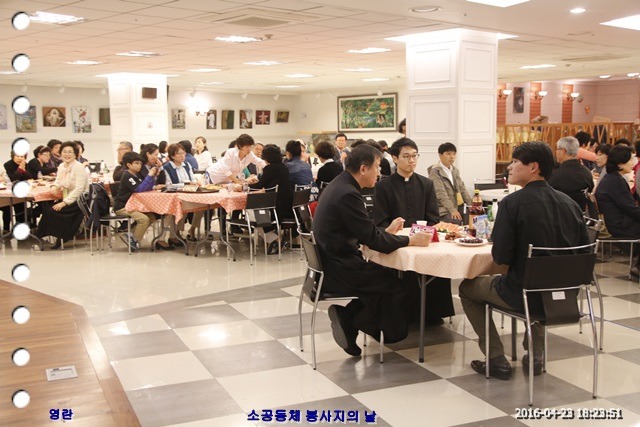 4월 23일은 본당 소공동체 봉사자의 날이다. 본당 활성화를 위하여 늘 뒤에서 쉴 새 없이 봉사하는 남여 소공동체 반장, 구역장, 지역장, 구역장, 소공동체 회장, 총화장이 신부님을 모시고 즐겁게 친목과 단합을 하는 잔치날이다.