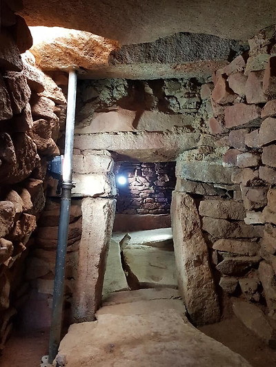 ◇ 최근 발굴 조사된 전남 해남군 북일면 방산리 장고봉 고분 내부 돌방(석실)의 모습. 주검을 놓는 방으로 들어가는 입구인 현문이 정면에 보이고 납작한 판석 여러 개를 놓은 바닥면과 깬돌을 정연하게 쌓은 돌방의 벽체가 보인다. 1990년대까지 두 차례 도굴당해 내부 유물들은 대부분 사라졌다.