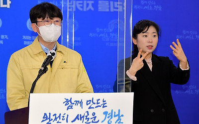 ◇ 경남도는 18일 “경남 진주의 한 요양병원에서 지난 16일 병원 종사자 142명을 대상으로 고위험시설 선제검사를 했는데, 이 가운데 2명이 17일 코로나19 양성판정을 받았다. 이에 따라 종사자, 입원환자, 최근 퇴원한 환자 모두를 검사한 결과 종사자 2명, 입원환자 4명, 지난 11일 퇴원한 환자 1명 등 6명이 추가로 양성판정을 받았다”고 밝혔다 <△ 사진:> 김명섭 경남도 대변인이 18일 경남의 코로나19 발생 상황을 설명하고 있다. 경남도 제공