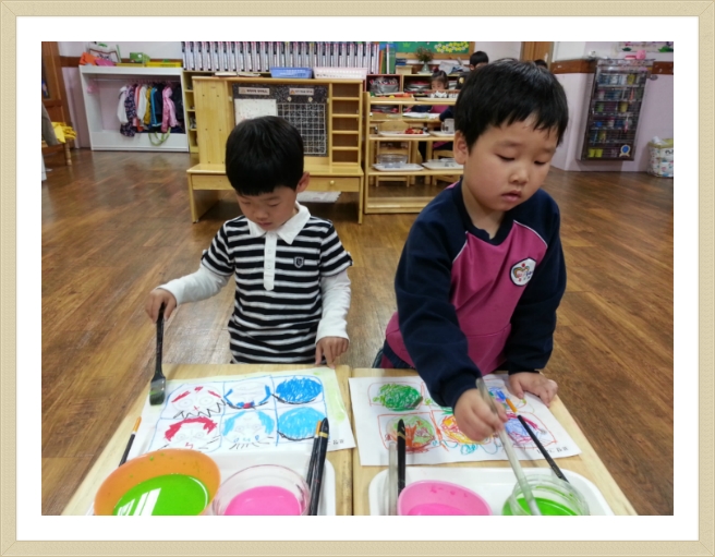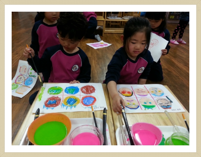 조형활동~ 표정 그리기~^^ 작성자고운햇살홍아름T|작성시간13.05.23|조회수226 목록 댓글 0 글자크기 작게가 글자크기 크게가 우리 친구들이 다양한 감정에 대해 이야기를 나눈 후표정 그리기를 해 보았어요~화난 표정, 웃는 표정, 놀란 표정, 우는 표정 여러 가지 표정표정을 따라 그리고 물감으로 채색해 주었답니다. ^^ 다음검색 현재 게시글 추가 기능 열기 북마크 공유하기 신고 센터로 신고 댓글 댓글 0 댓글쓰기 답글쓰기 댓글 리스트