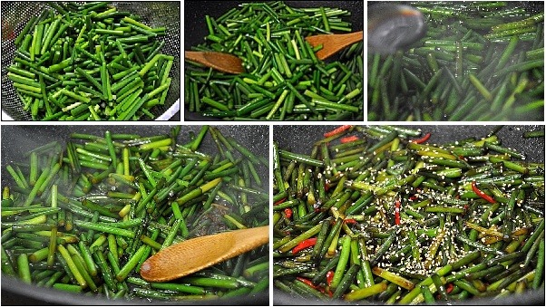 tip: 마늘쫑의 양쪽 끝은 잘라버린후에 조리를 한다.(기계나 낫등의 도구가 닿았던 부분을 잘라버리고 조리)