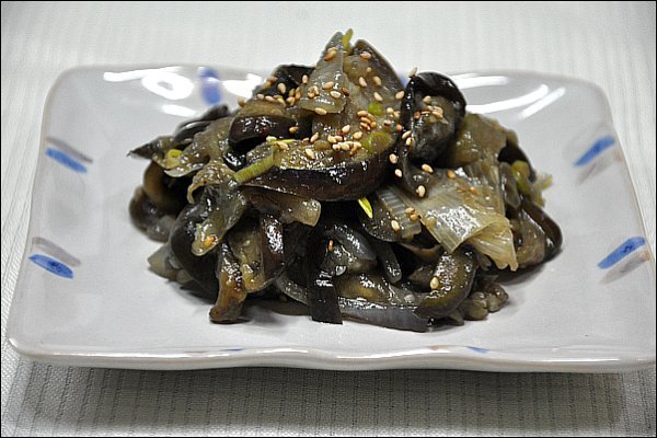 [재료] 가지 6개, 볶은소금 2분의1숟가락, 다진마늘 1숟가락, 양파 2개