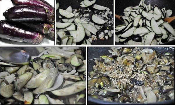 3. 2에 1의 가지와 양파른 넣은뒤에 가지의 숨이 죽을때까지 볶아준다.