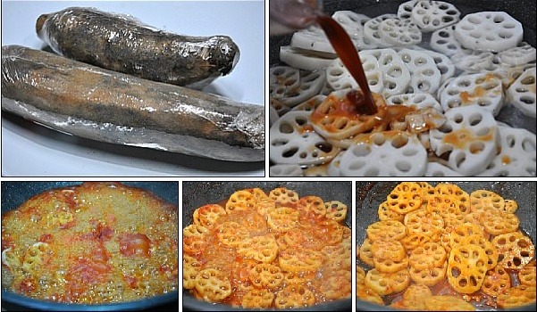 [재 료] 연근 25센치,15센치길이 2뿌리, 올리고당