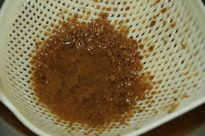 한참을 끓여야 하니 된장국 끓일때 보다도 약간 더 싱겁게 된장의 분량을 잡아 채나 조리에 으깨어 풀었습니다.