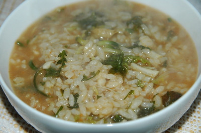 된장 맛과 어울어진 냉이의 맛이 참 좋은 죽입니다.