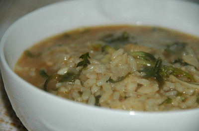 쌀이 거의 익었을즈음에 송송 썬 냉이를 넣고 냉이가 숨이 죽을만큼만 익힌후 불에서 내립니다.