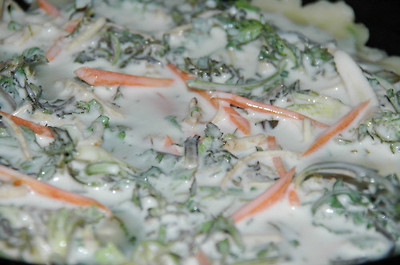 송송 썬 냉이와 채 썬 당근을 넣고 부침개를 부쳤어요.