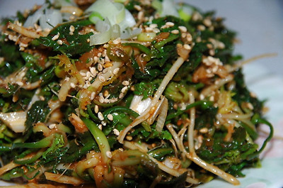 물을 넉넉하게 받아 나물을 절래절래 흔들어가며(울 엄마 표현!) 여러번 씻어요.