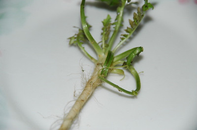 뿌리와 줄기 부분의 검은 부분을 칼로 잘 다듬고, 뿌리도 칼로 살살 긁어주고, 시든 잎은 떼어냈어요.