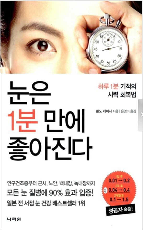 눈은 1분만에 좋아진다 콘노 세이시 옮긴이 은영미 나래원 2018.3.9. 12쇄 167 페이지 12,000원 읽은기간 2018.10.9.~22.