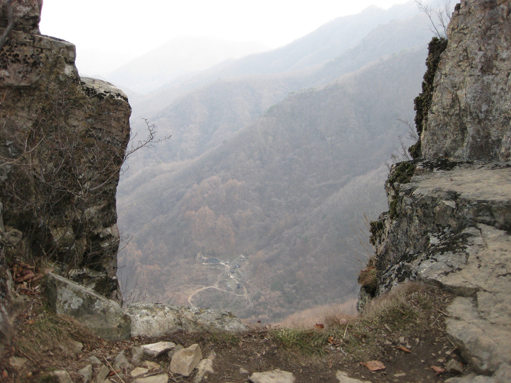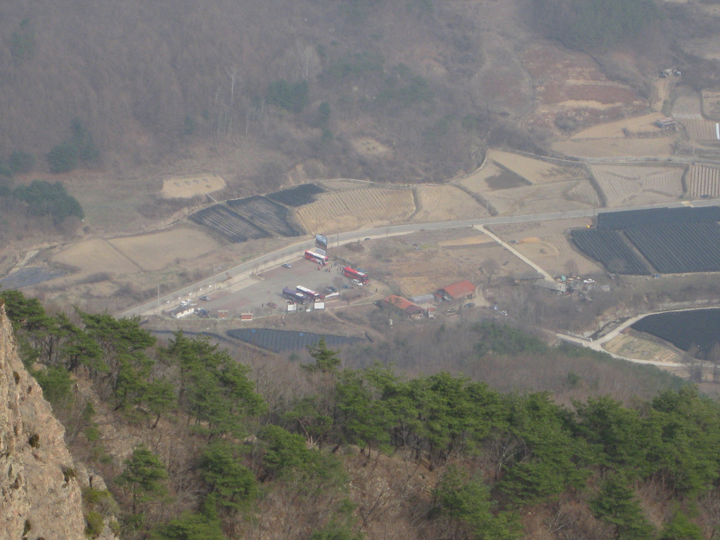 발 아래 산악회 빨간색 버스는 보이나.... 이곳은 해발 700여m,,,,