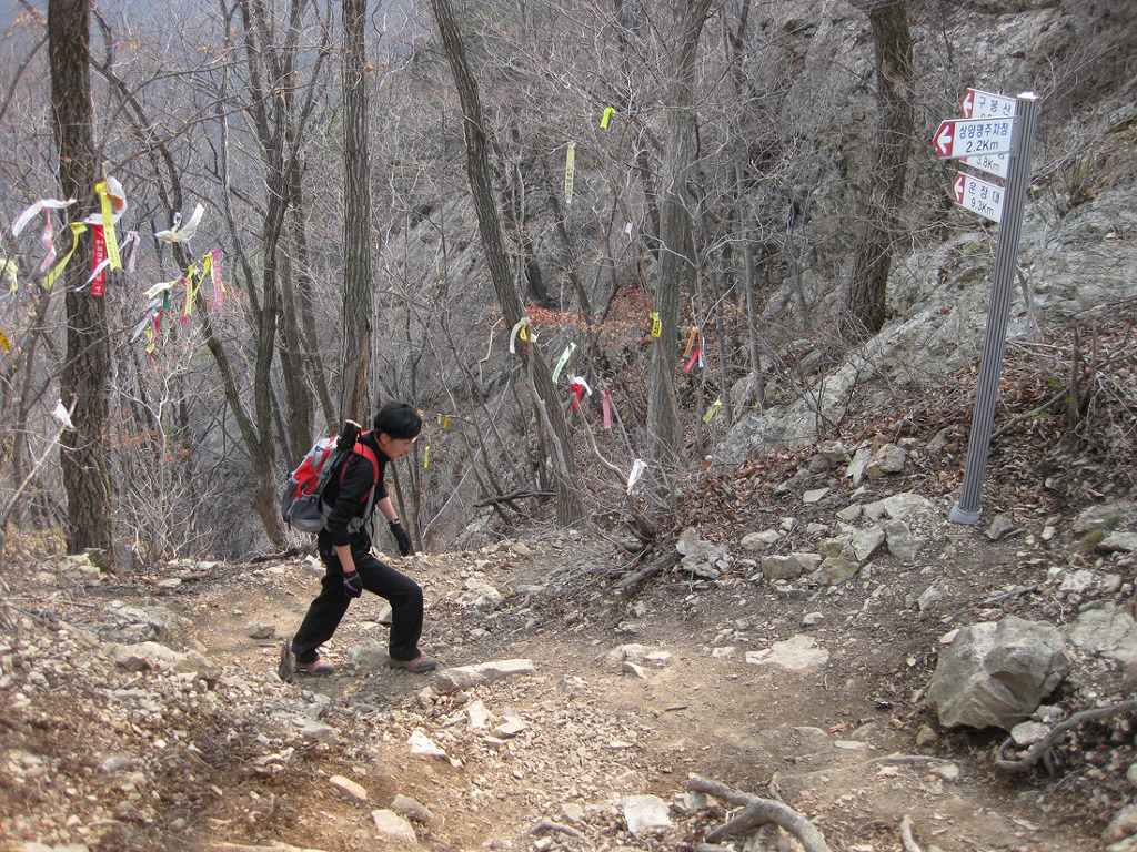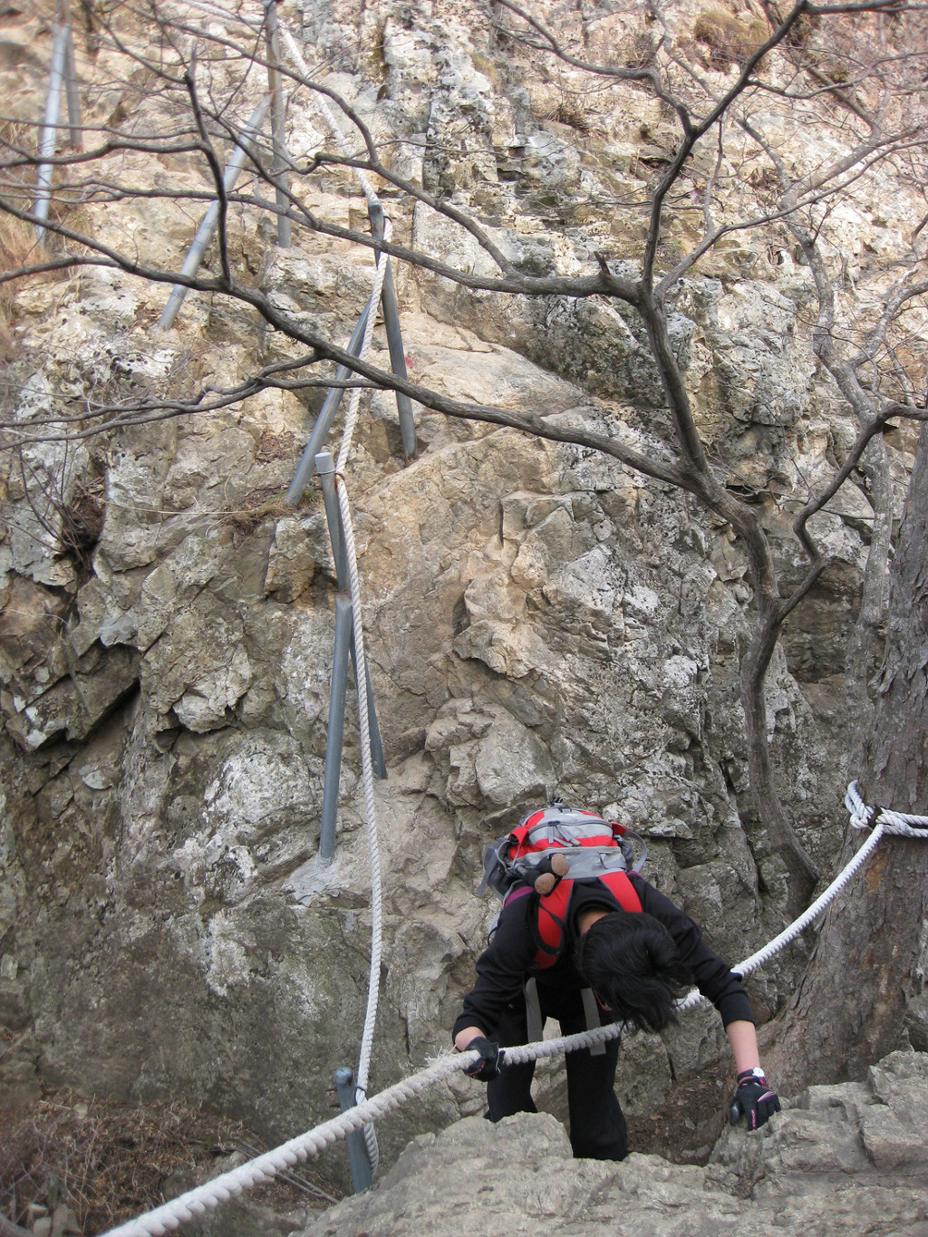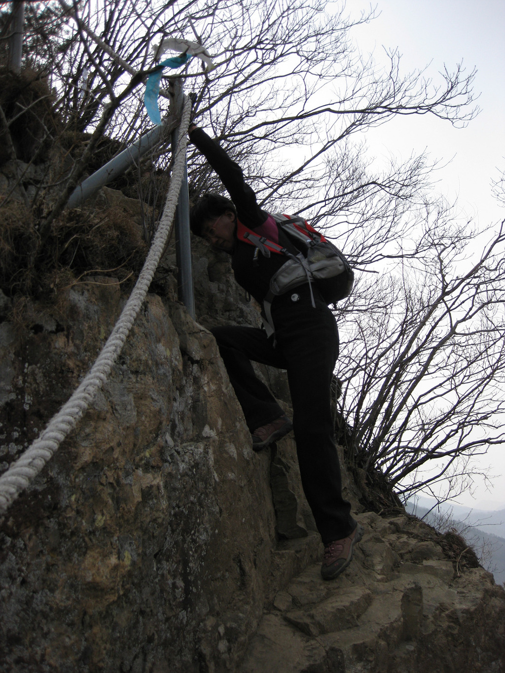 급경사 오르 내림이 많아 체력소모가 크고, 아찔하여 스릴은 있으나 위험하여 겨울철 산행에는 주의해야 할 것 같고,