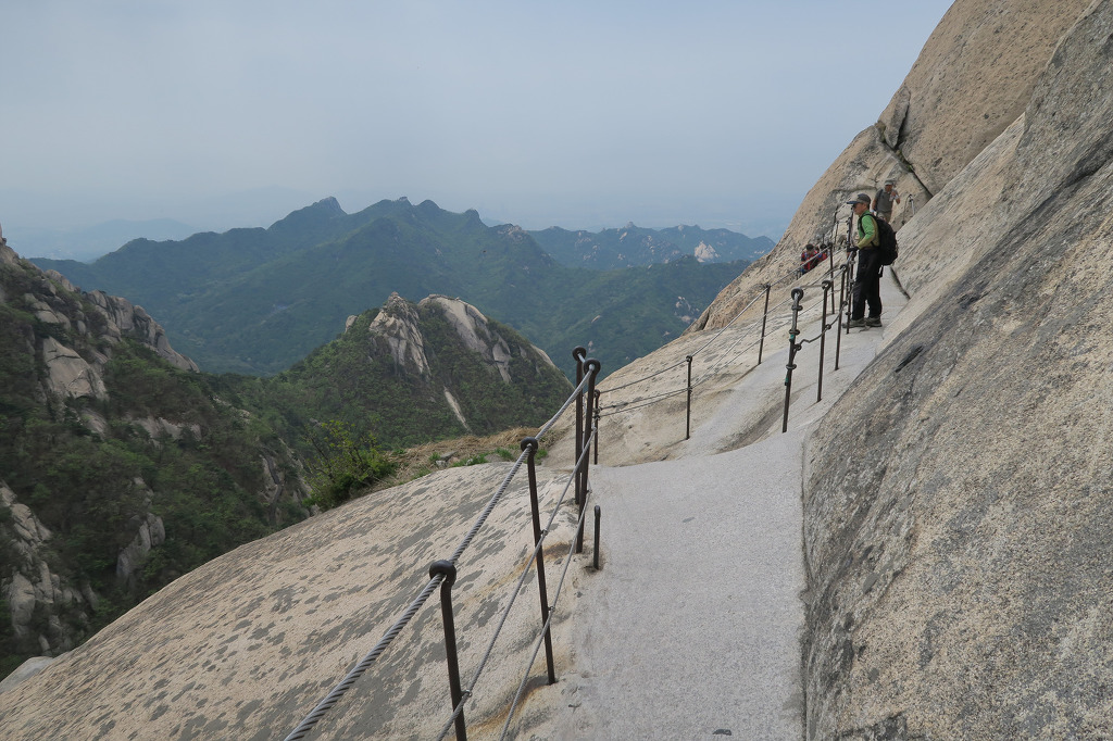 백운대에 오르는 등산로는 계단과 쇠줄을 두 줄로 설치하여 예전보다 수월하게 올라갈 수 있다.