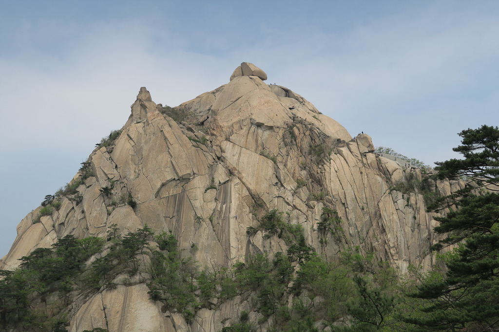 사면이 70도 절벽인 인수봉 정상 모습