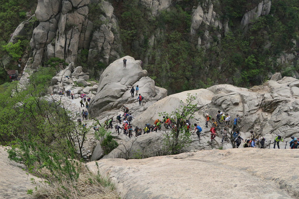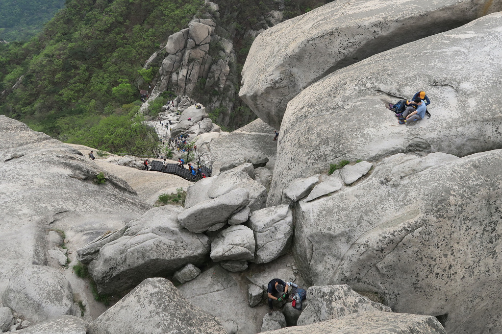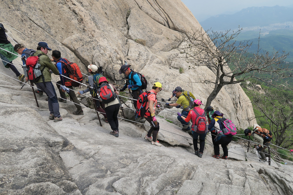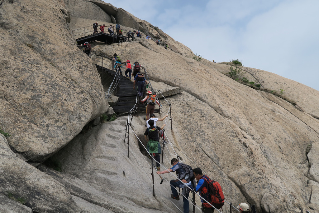 백운대를 오르는 등산객 들....
