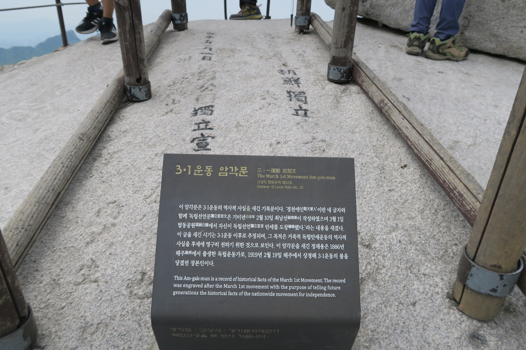 북한산 정상에 새겨진 3.1운동 암각문