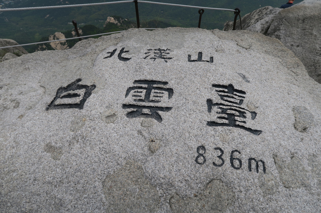 북한산 정상에 새겨진 북한산 백운대 정상 표지석?