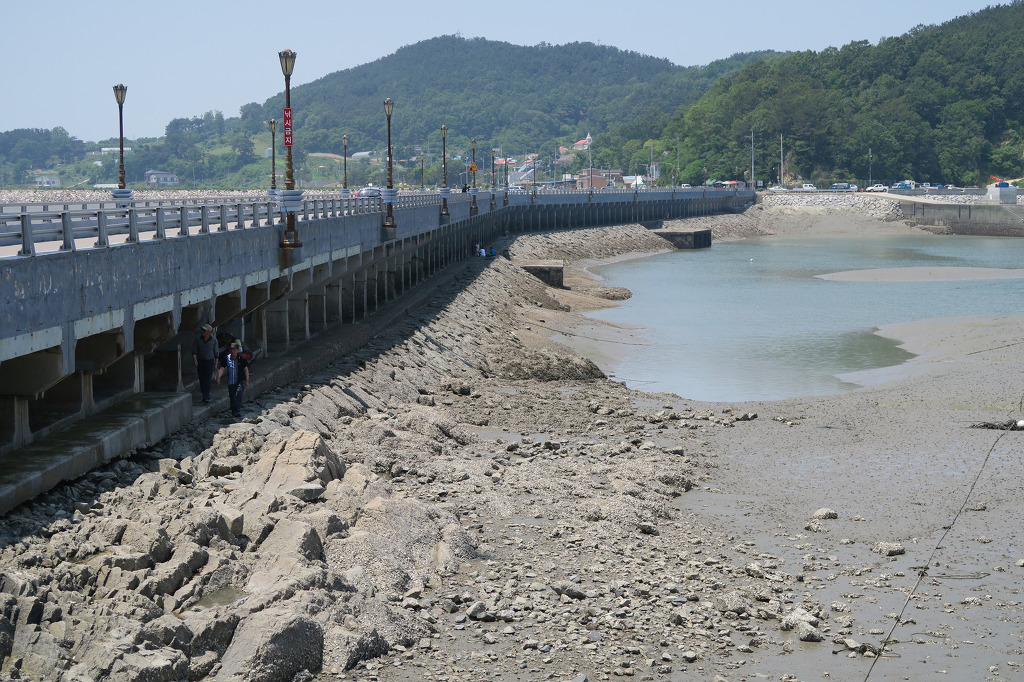 걸어서 건널 수 있으며, 다리 아래 바위에는 굴이 지천으로 널려 있다.