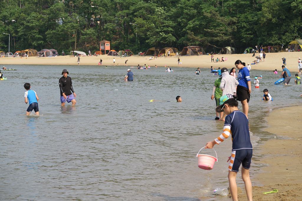 수기해변은 완만하고 넓은 백사장으로 마니산이 지척으로 보이며, 방죽길을 따라 펼쳐진 해당화가 일품이다.