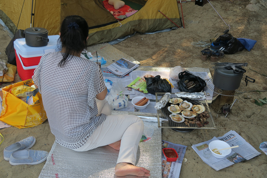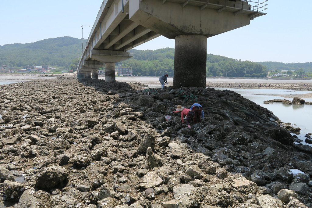 간조로 물빠진 신도-시도 연육교 다리밑을 지나며 짭쪼름한 굴도 먹을 수가 있었다.