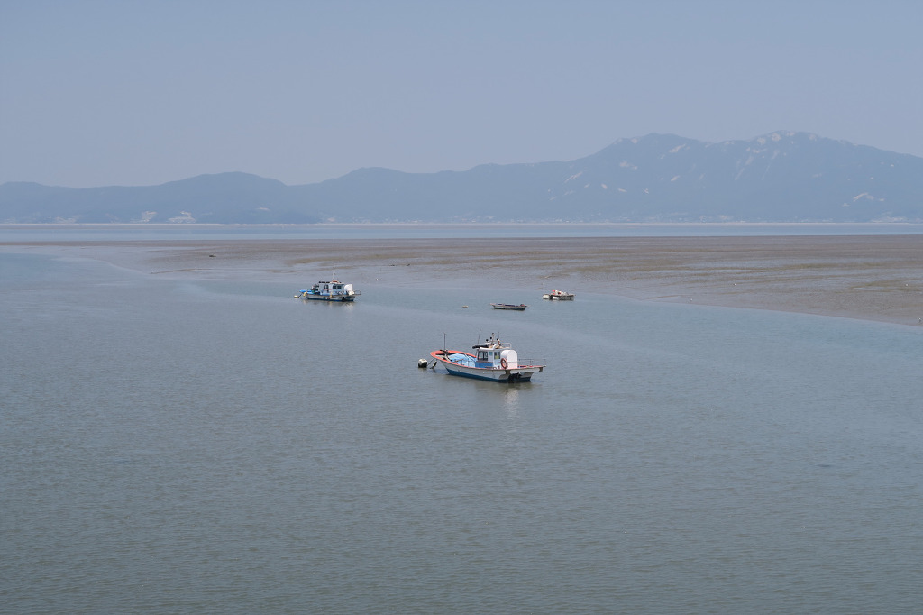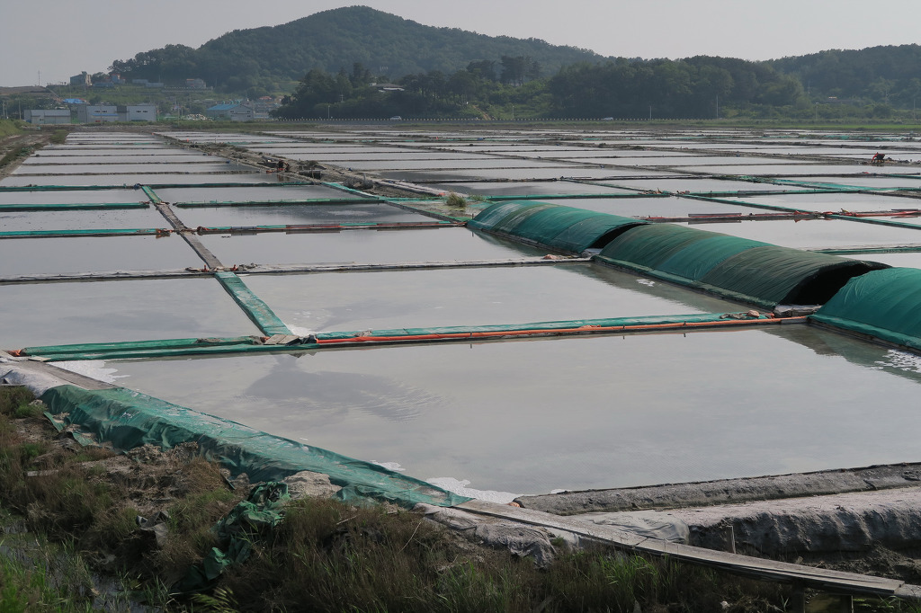 간척지를 염전으로 만든 것 같다. 해수면이 염전바닥 보다 높다.
