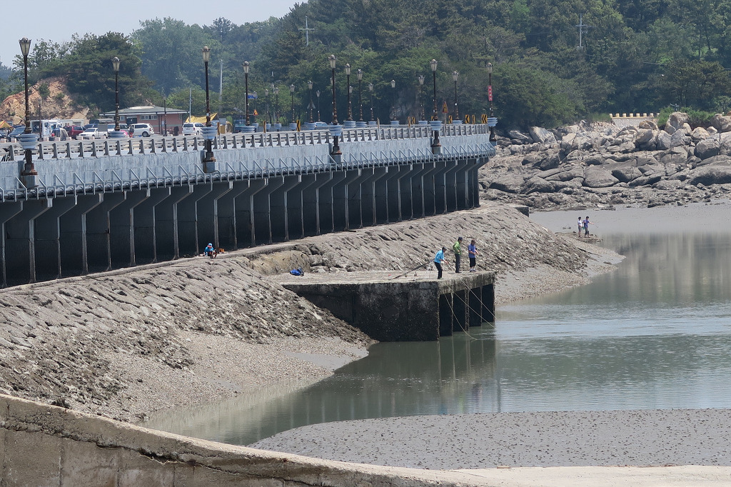 다리 부근 바다 바닥 일부는 바위, 모래, 일부는 뻘로 되어 있어 바다 안쪽 깊숙히 걸어들어 가기도 한다.