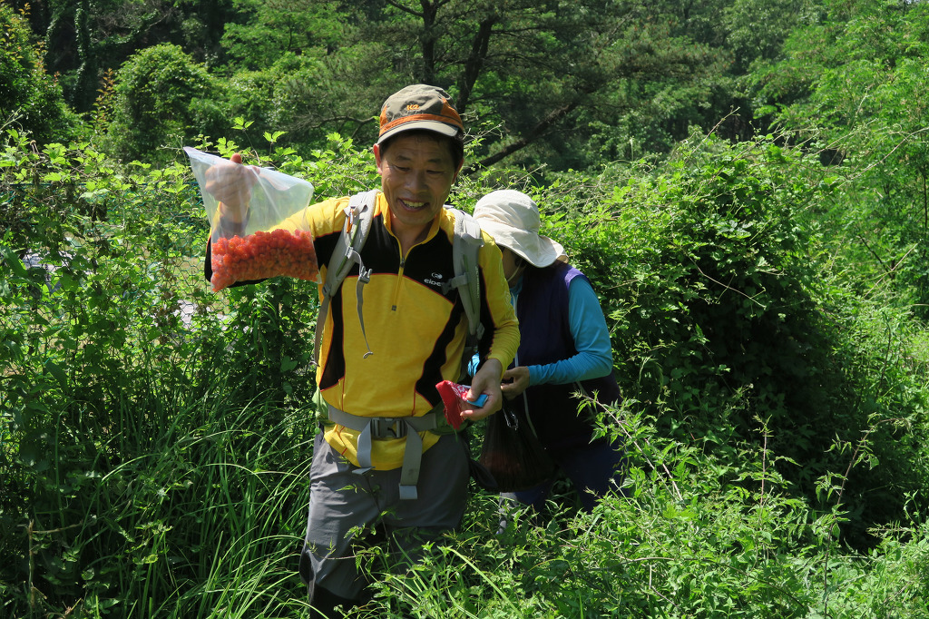 구봉산(180m) 정상을 오른 후 하산하며 딸기 군락지에서 산딸기 맛도 보고,