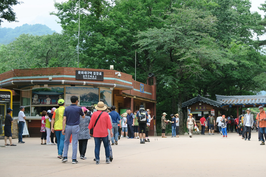 "조계선풍시원도량설악산문"이 세워진 설악동탐방지원센터(매표소) 바로 앞까지 버스가 올라가 등산객은 이 곳에서 하차하고 버스는 주차장으로 내려가 주차한다.