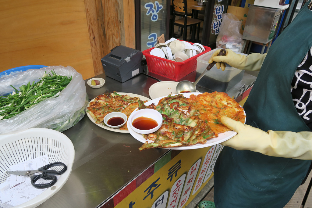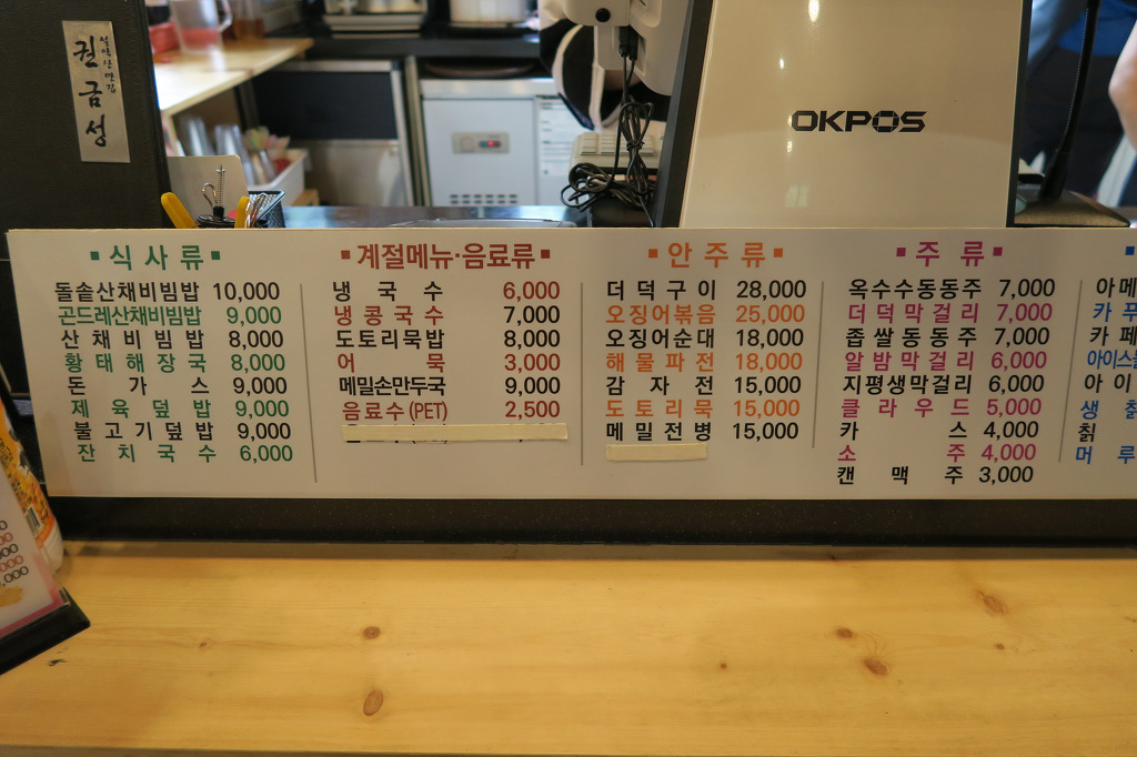 더덕막걸리 7,000원 / 해물파전 18,000원. 3~4 곳을 둘러 봤는데 가격은 대동소이하다.