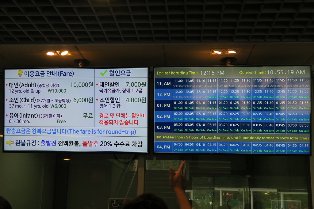 현재시간 10:55 분 / 가장 빠른 케이블카 탑승 매표시각 12:15