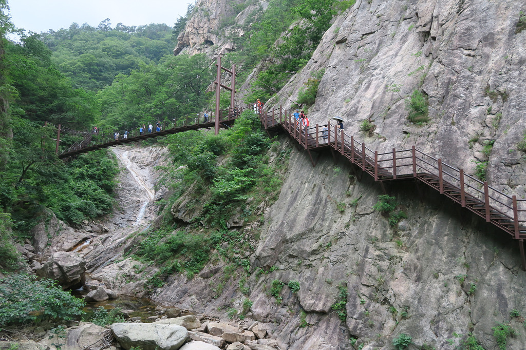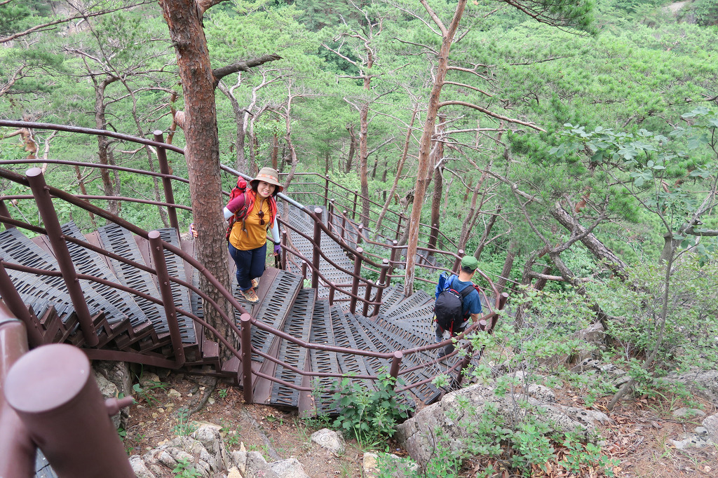 왼쪽 계단으로 20여분을 오르면 토왕성폭포전망대에 오르는데, 대부분 계단으로 되어있고 경사가 급한 곳도 있다.