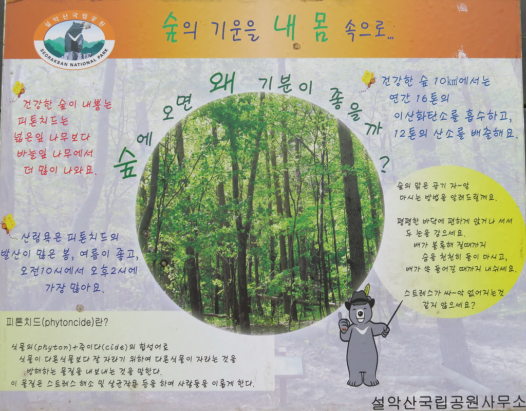 하산길의 안내간판. 피톤치드가 이런 뜻 이었구나!
