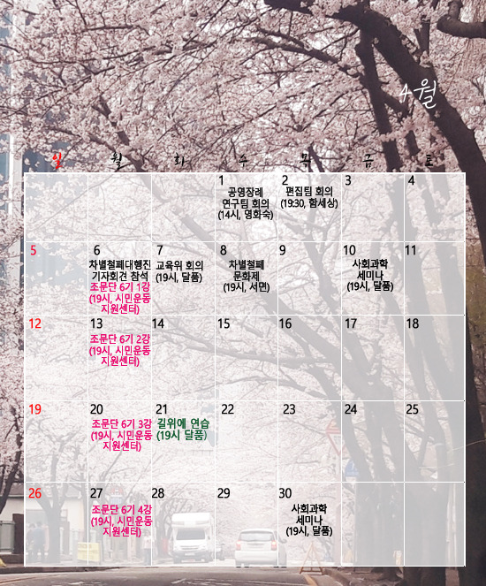 2026년 4월 일정표 작성자디디|작성시간26.04.07|조회수9 목록 댓글 0 글자크기 작게가 글자크기 크게가 다음검색 현재 게시글 추가 기능 열기 북마크 신고 센터로 신고 댓글 댓글 0 댓글쓰기 답글쓰기 댓글 리스트