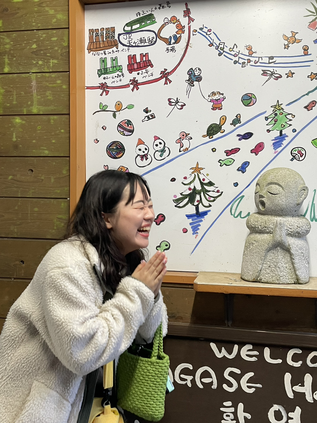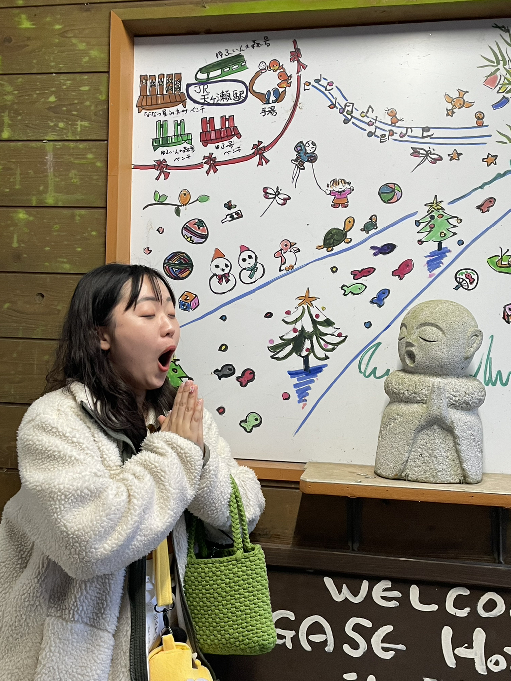 그리고 다시 료칸이 있는 역으로 돌아왔는데 저 동상이 너무 귀여워서 따라하다가 제 모습이 너무 웃겨서🤣🤣