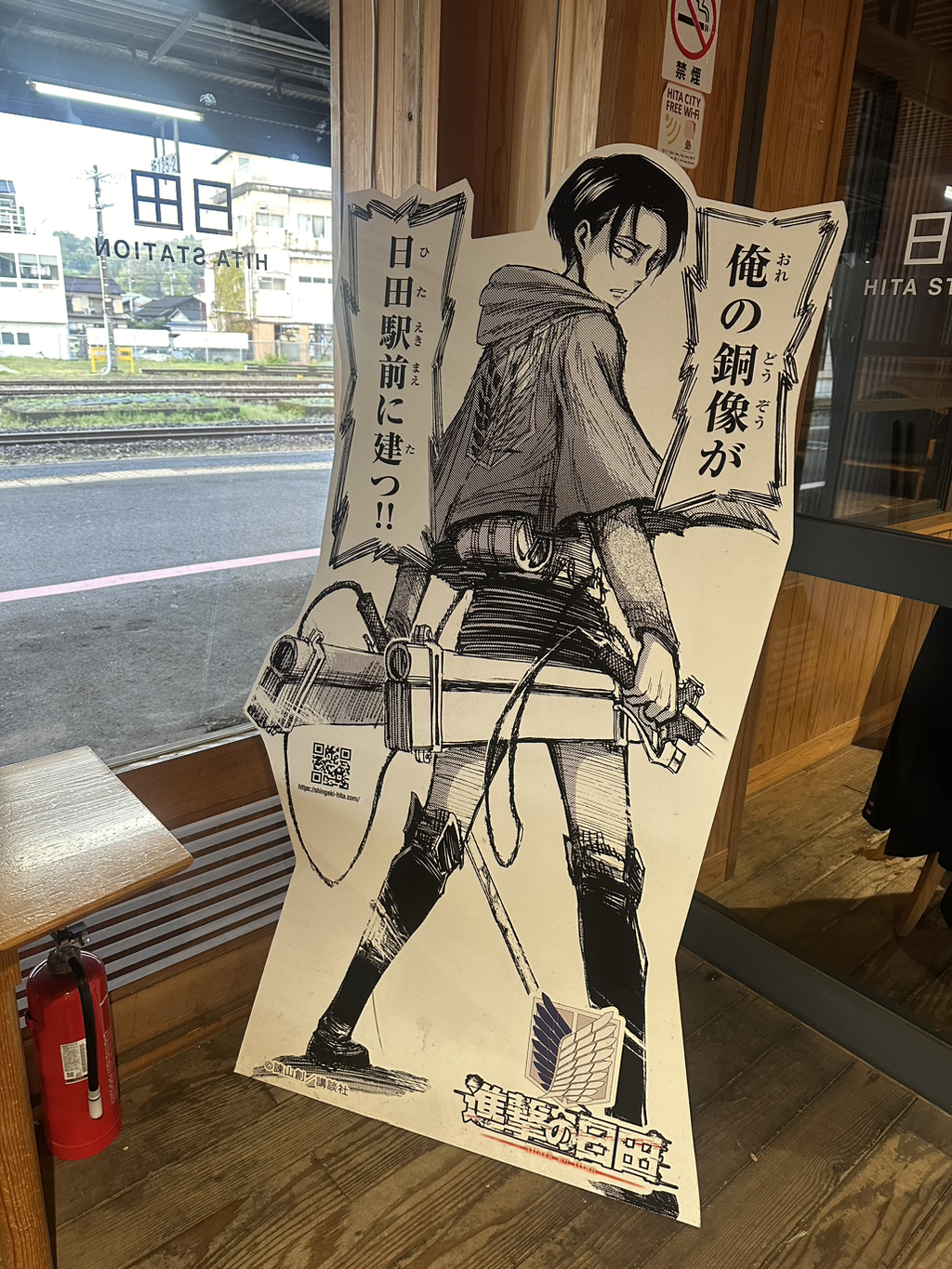 그래서 역 곳곳에 진격의 거인 그림이 있었습니다! 규림이가 진격의 거인을 좋아해서 사진을 많이 찍었어요 🙂