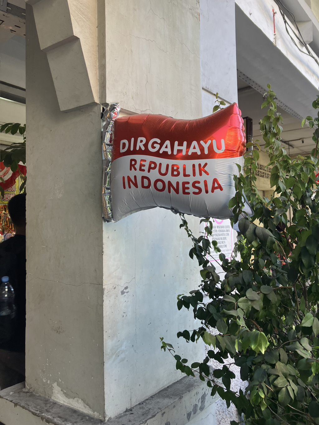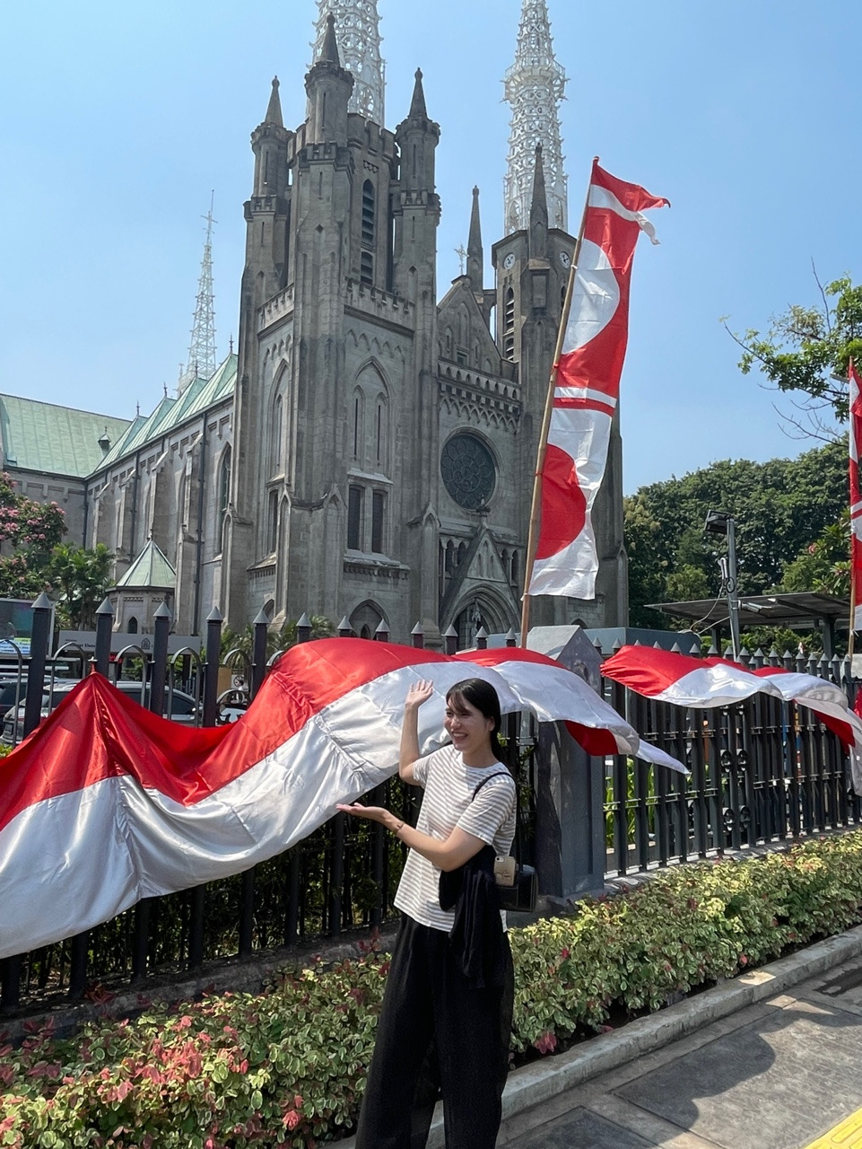 インドネシアの独立記念日前後で、インドネシアの国旗がいたるところに掲げられていました🇮🇩