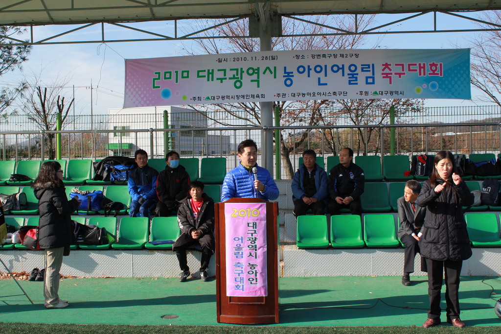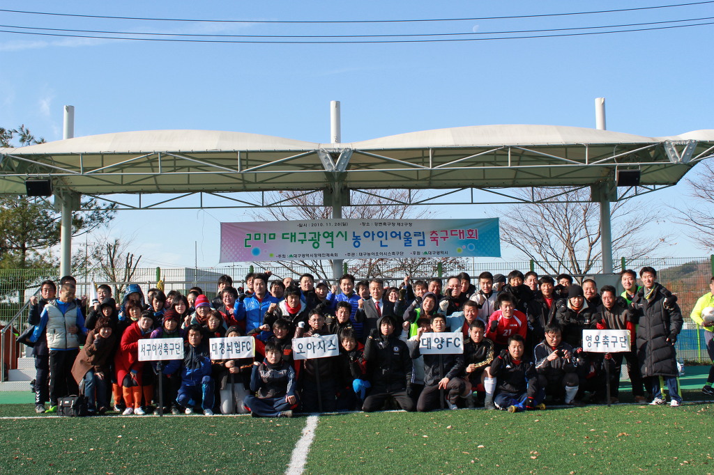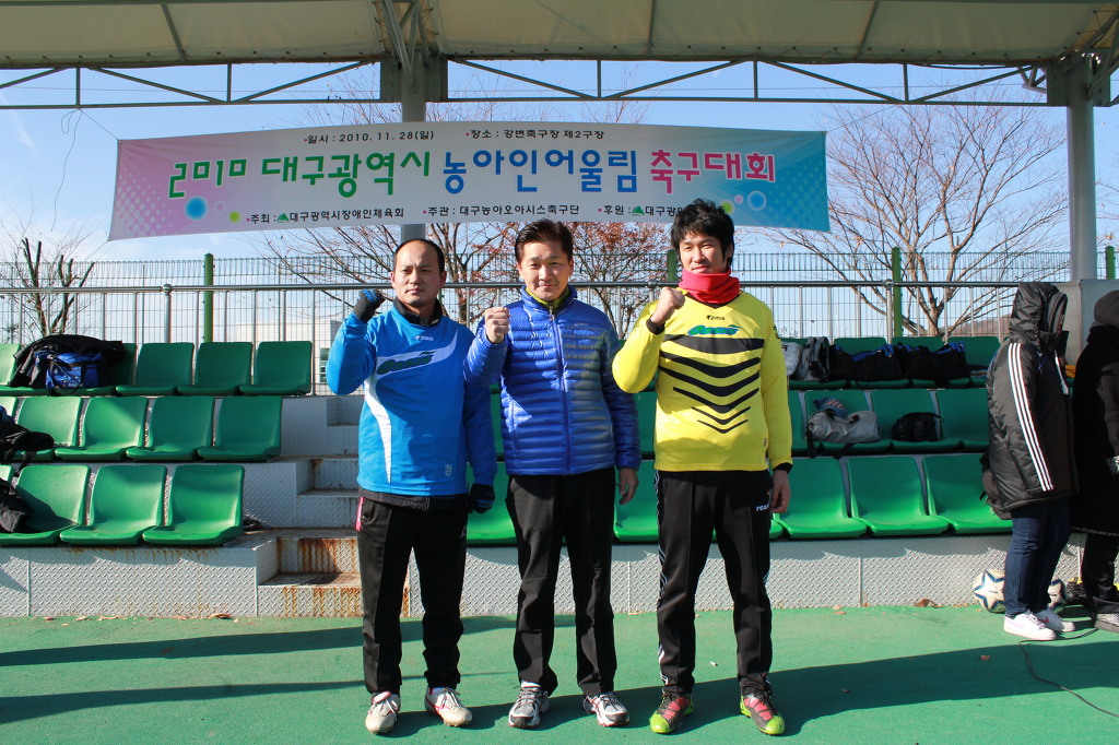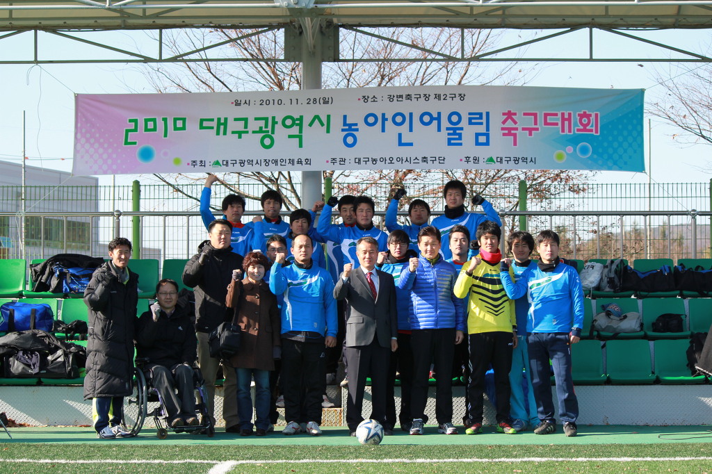 작성자이재경 작성시간 10.11.28 추운 날씨에도 함께 참여해주신 오아시스, 대경fc, 서구여성축구단, 대양fc, 영우축구단 여러분 감사드립니다. 여러분들이 있기에 장애인체육의 미래는 열려있습니다. 감사합니다.