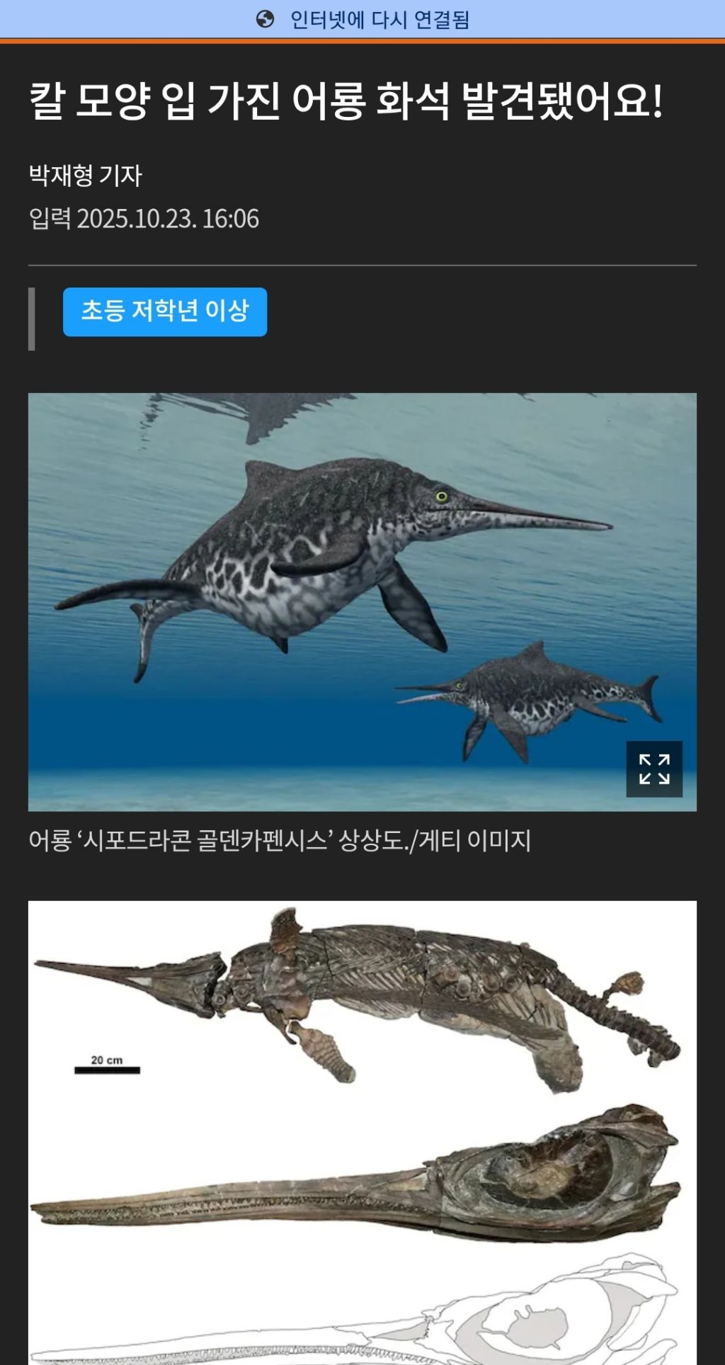 칼 모양 입 가진 어룡 화석 발견됐어요!