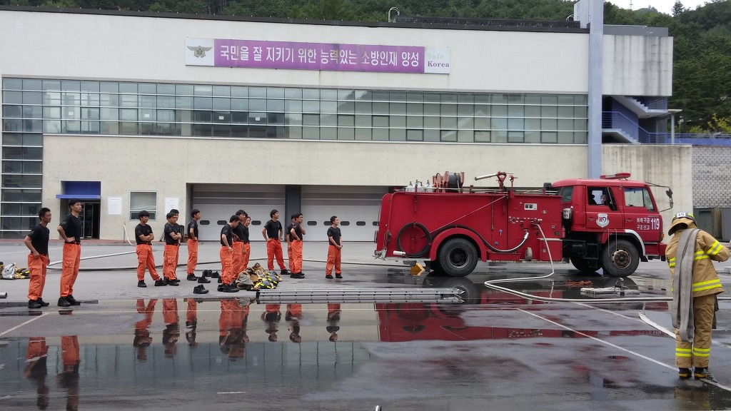역시 36명 연수생 전원 출석! 아침 8시에 30분에 숙소에서 강원 소방학교로 향했다.