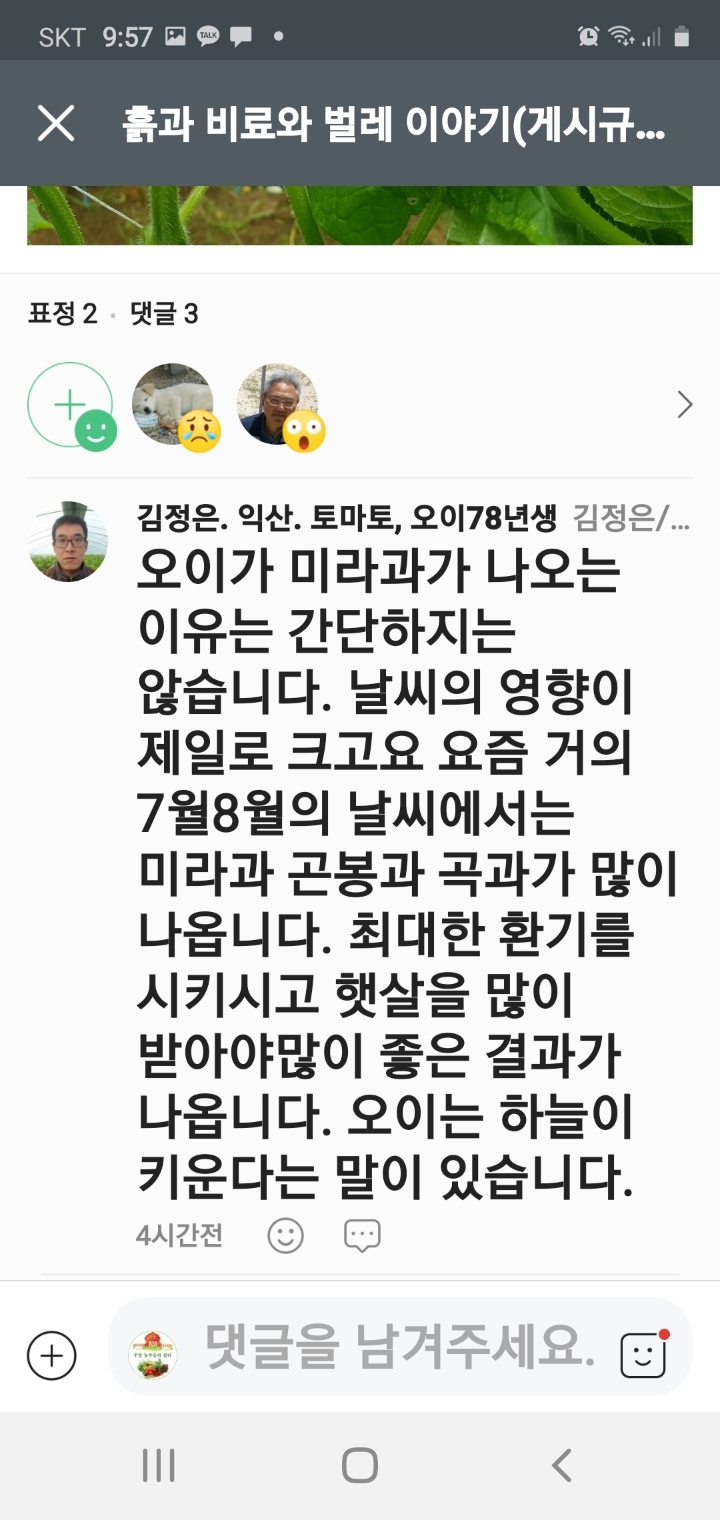 작성자그냥(여주) 작성시간 20.08.04 여름철 흔하게 먹는 대표적인 채소인데 반해 상당히 예민한 작물이군요?