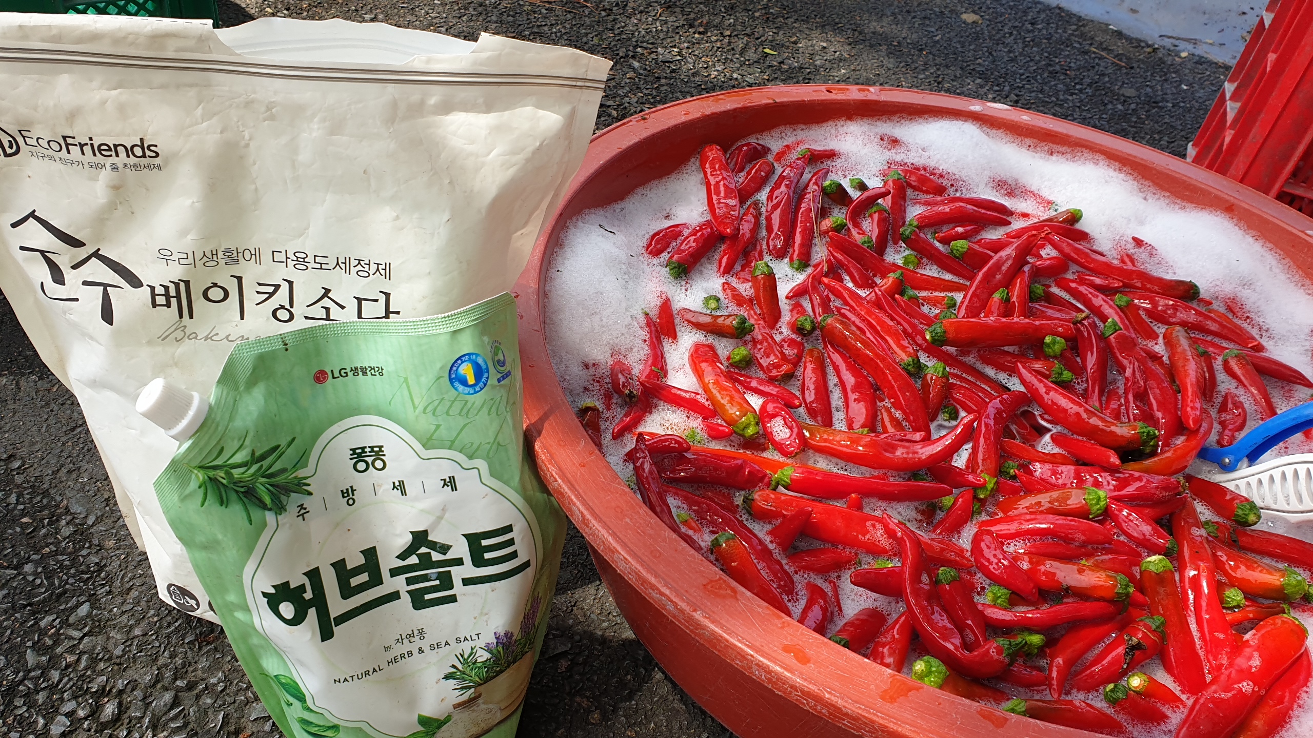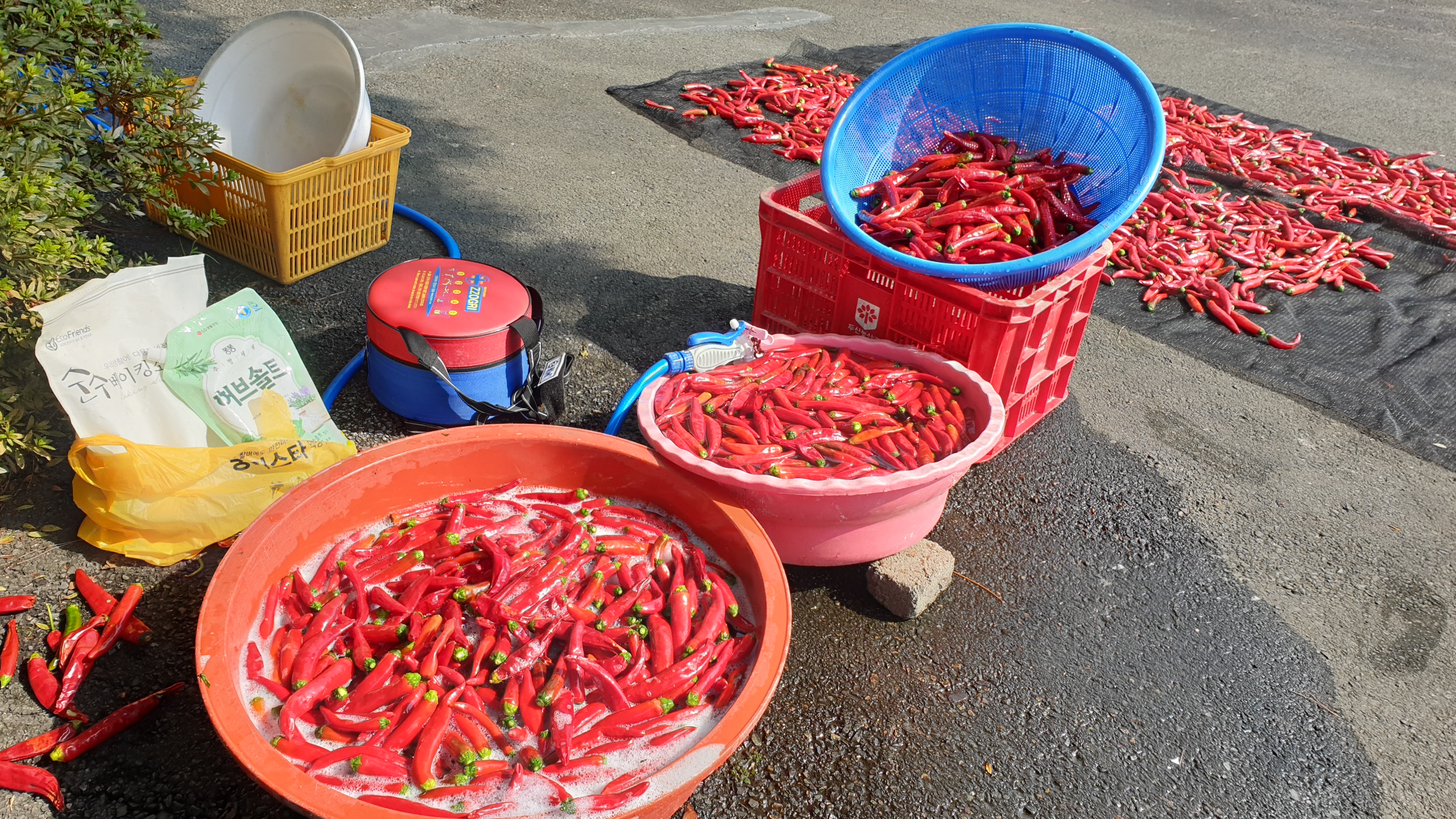 작성자체리(부산)68 작성시간 22.07.20 고추를 이렇게 씻어서 말리는군요~~