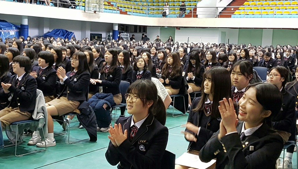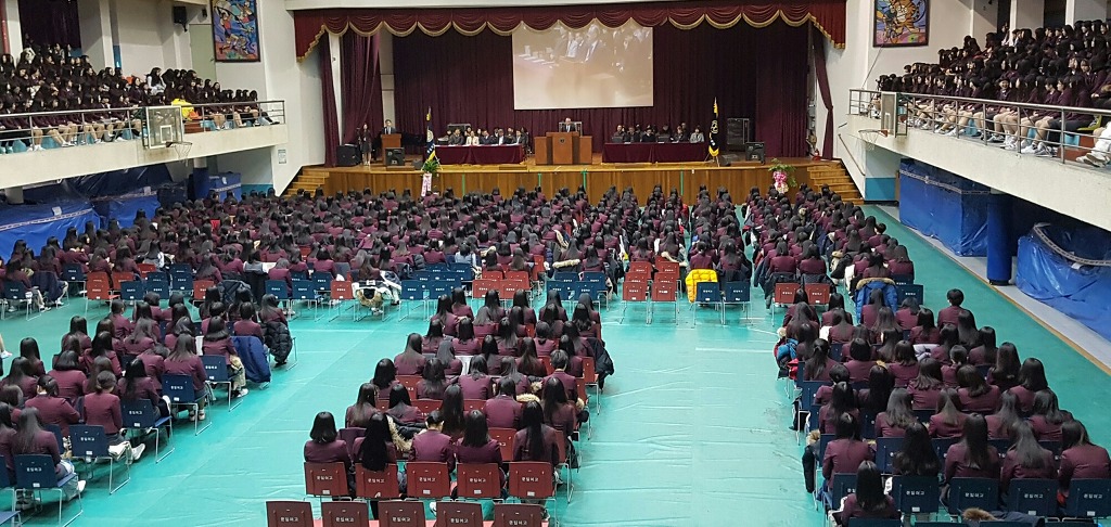 문일여고가 서원회관에서 입학식을 하고 있다.