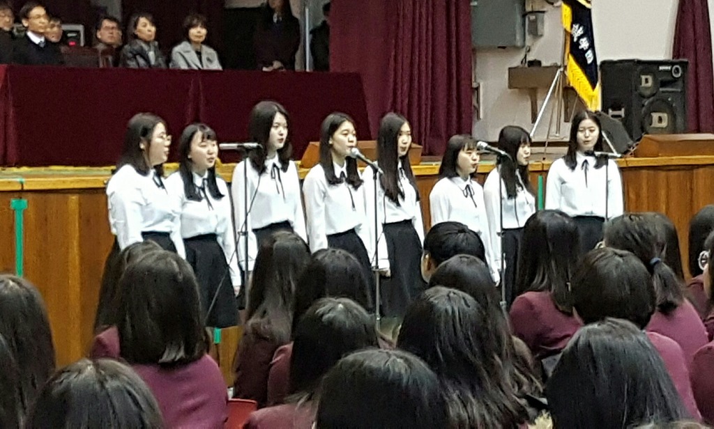 문일여고 OPUS(동아리)가 입학 축가를 부르고 있다.