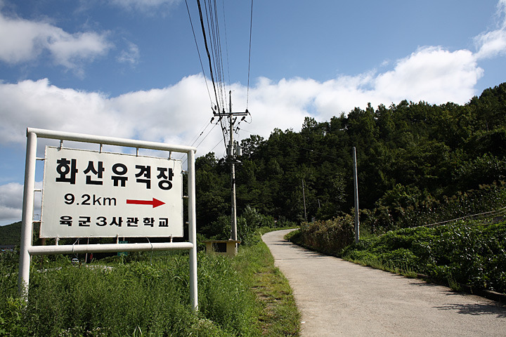 화산유격장으로 가는 길, 산속으로 차가 오르며 '곧 있으면 도착하겠거니'하던 기자의 생각은 완전히 빗나갔습니다. 하늘을 향해 한 없이 올라가는 차량, 그렇게 한참을 올라가 하늘과 맞닿을 것처럼 높은 곳에 화산유격장이 있었습니다.