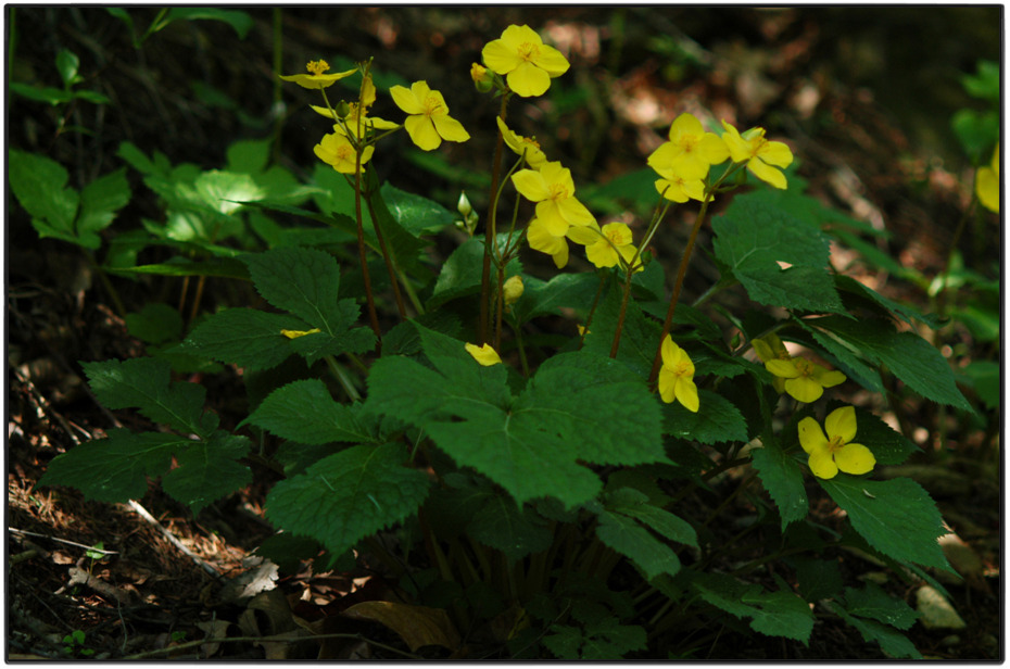 경기 이북 깊은 산 숲속 습기가 많은 곳에서 잘 자란다. 뿌리줄기는 짧고 굵으며 여기서 잎과 꽃줄기가 나와서 높이 30cm 내외로 자라고 자르면 노란빛을 띤 붉은색 유액이 나온다. 잎은 깃꼴겹잎이고 작은잎은 넓은 달걀 모양이며, 가장자리에 불규칙고 깊게 패어진 톱니가 있다. 뿌리에서 나온 잎은 잎자루가 길고 줄기에서는 어긋나며 5개의 작은잎으로 되어 있다.