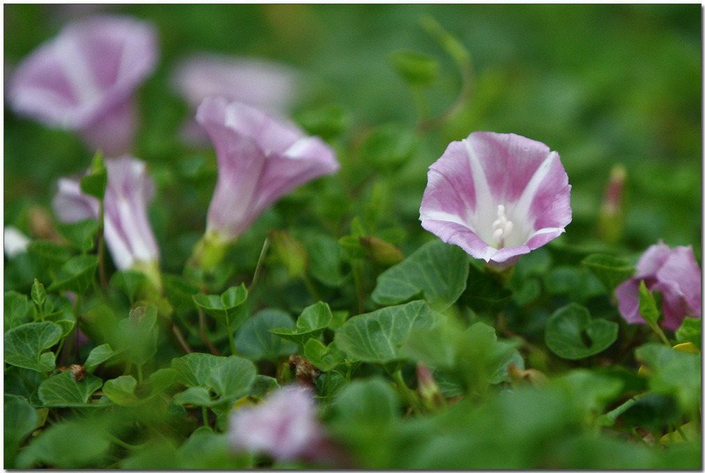 꽃은 5∼6월에 잎겨드랑이에서 난 꽃자루에 한 개씩 피며, 분홍색이다. 화관은 희미하게 5각이 지는 깔때기 모양이다. 수술은 5개, 암술은 한 개다. 열매는 삭과이며, 둥글다. 씨는 검은색이다.